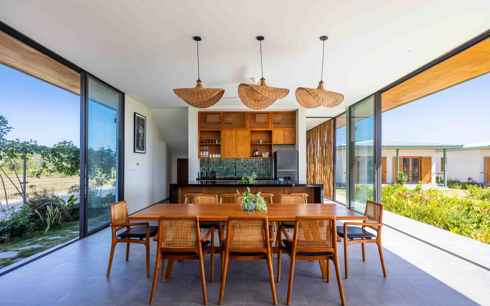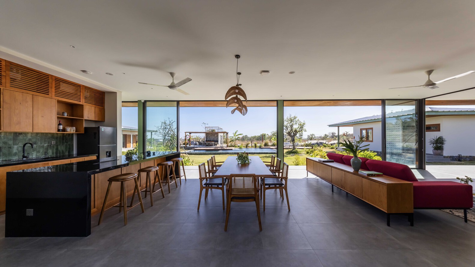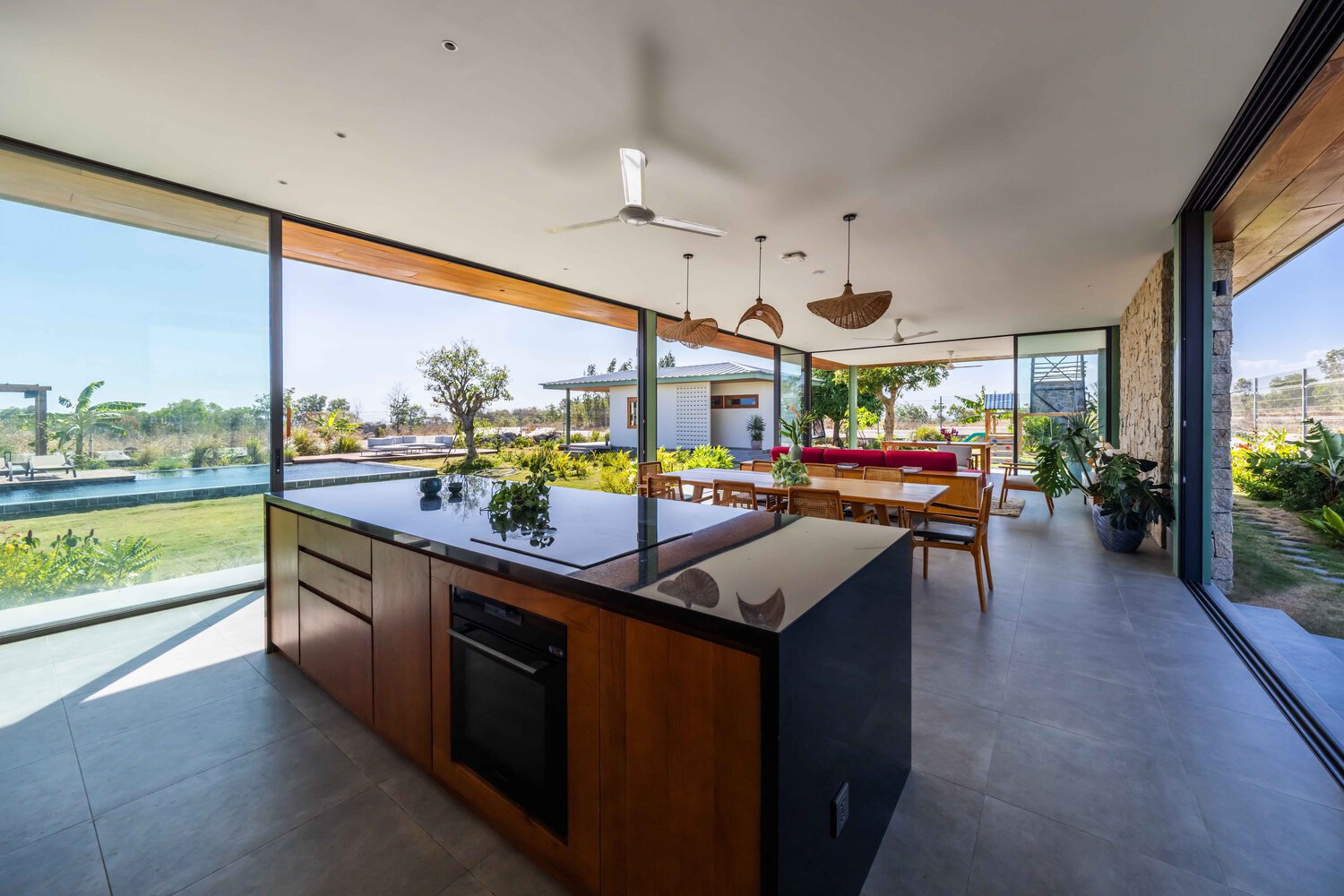 biệt thự chính – đặc biệt là khu bếp mở và không gian sinh hoạt ở tầng trệt –