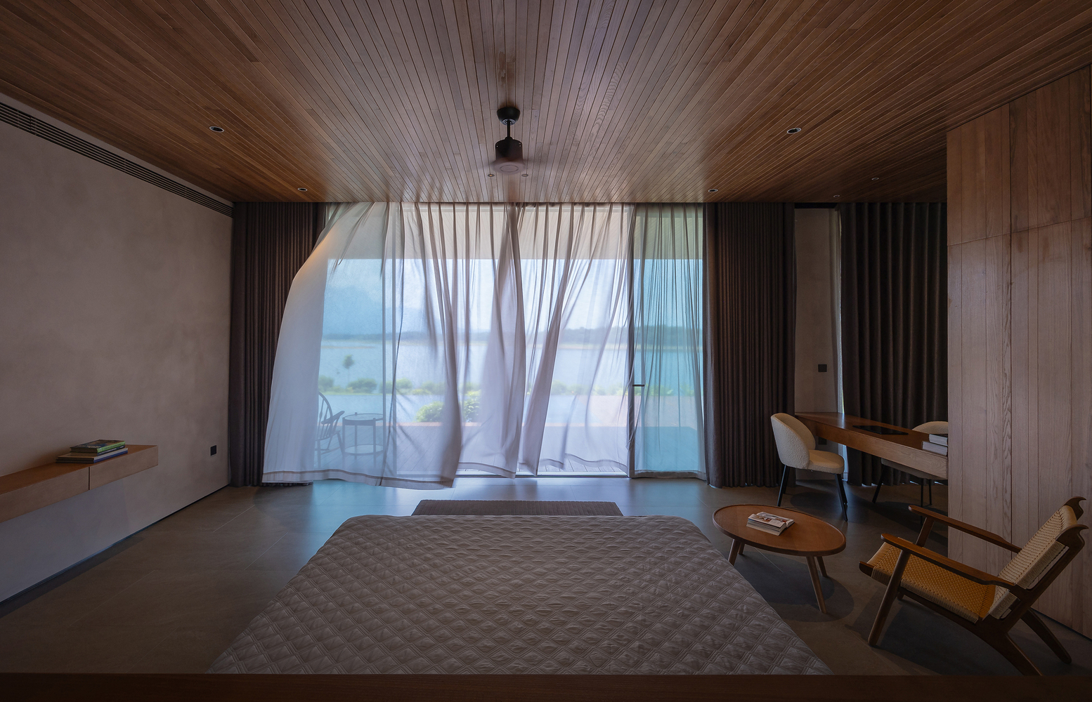 Ngôi nhà được thiết lập dọc theo hướng nhìn ra hồ nhằm tăng