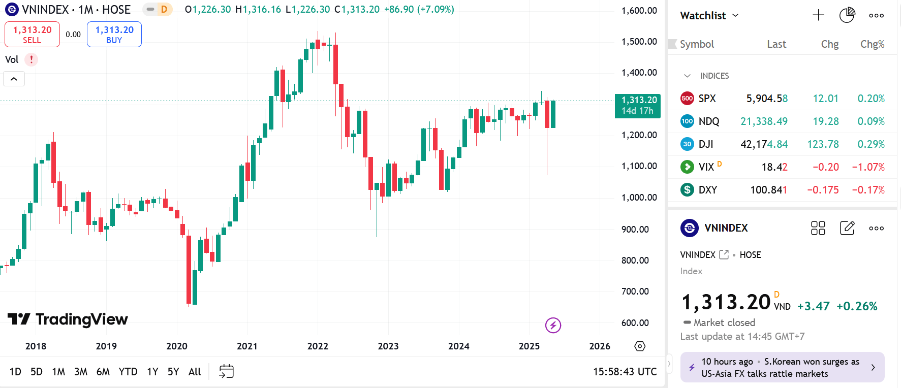 VN-Index được kỳ vọng sẽ kiểm tra lại vùng giá cao nhất tháng 3/2025, tương ứng 1.320-1.340 điểm