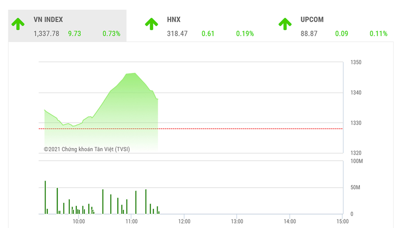 VN-Index tăng điểm trong phiên thứ ba liên tiếp với thanh khoản suy giảm trong bối cảnh HOSE chỉ giao dịch trong phiên sáng do thanh khoản đã đạt khoảng 21.000 tỷ đồng chỉ tính phần khớp lệnh...