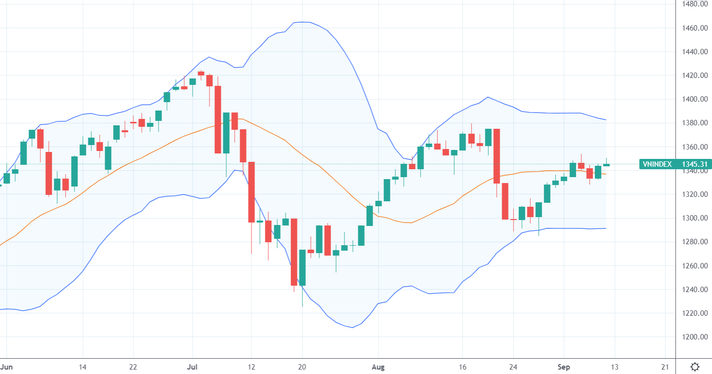 Về kỹ thuật, ngưỡng 1.350 điểm cũng là mức hồi tương ứng với Fibonacci 61,8% và với diễn biến thanh khoản như trên, thị trường khả năng sẽ tiếp tục dao động trong vùng 1.330 điểm – 1.350 điểm và dòng tiền tìm kiếm cơ hội ở các cổ phiếu được hưởng lợi từ việc nới lỏng giãn cách xã hội. Trong kịch bản lạc quan khi thị trường vượt thành công ngưỡng 1.357 điểm, cơ hội để vượt đỉnh tháng 8 sẽ có xác suất cao hơn.